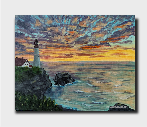 The painting is beautiful with a vibrant colors displayed in the sky. When viewing the artwork, it makes you think you are actually looking at the lighthouse in person.